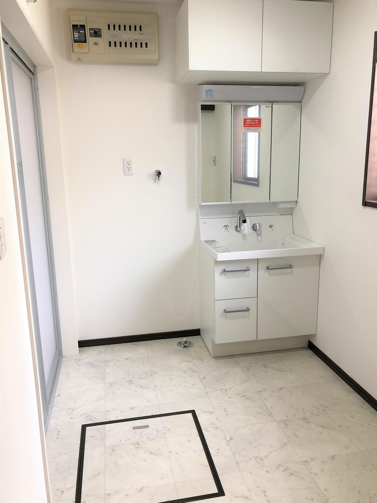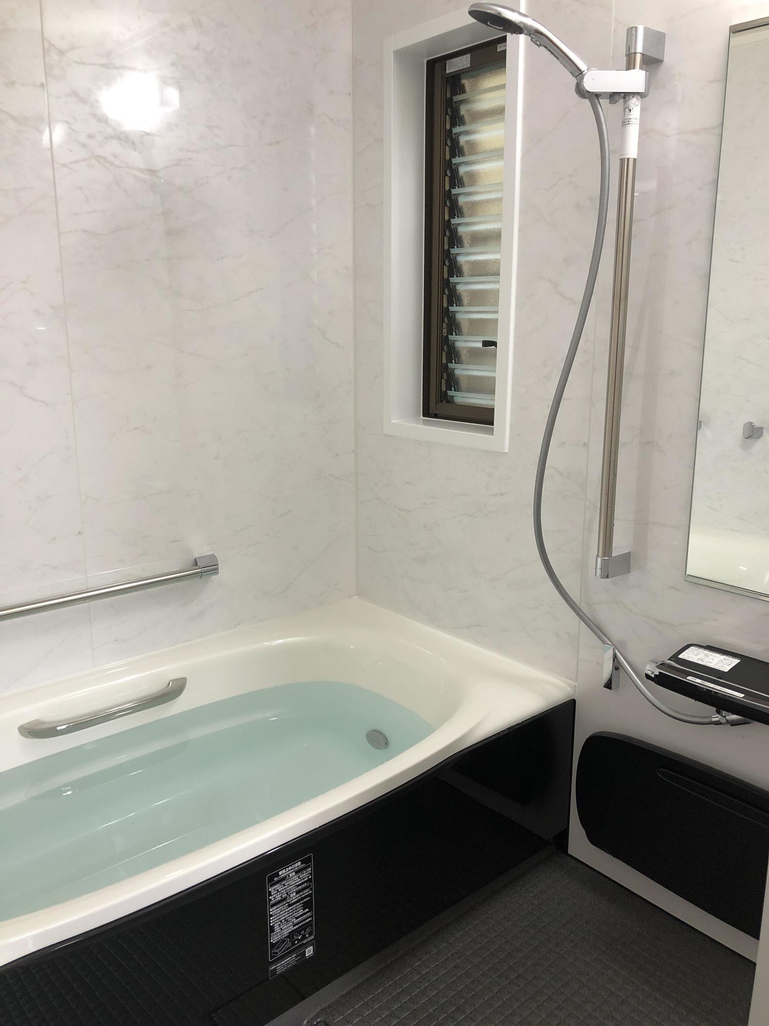 古くなった浴室を替えたいとご相談いただき、リフォームいたしました! 浴室はモノトーンですが壁パネルはホワイトなのでとても明るいです! カウンターは取外しも設置も簡単なのでお手入れもしやすくなっています♪ 洗面脱衣場は洗濯機と化粧台のレイアウトを変えて広々と使える空間に。