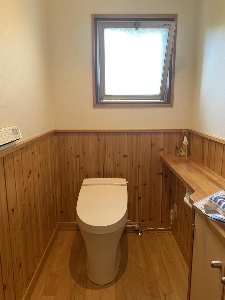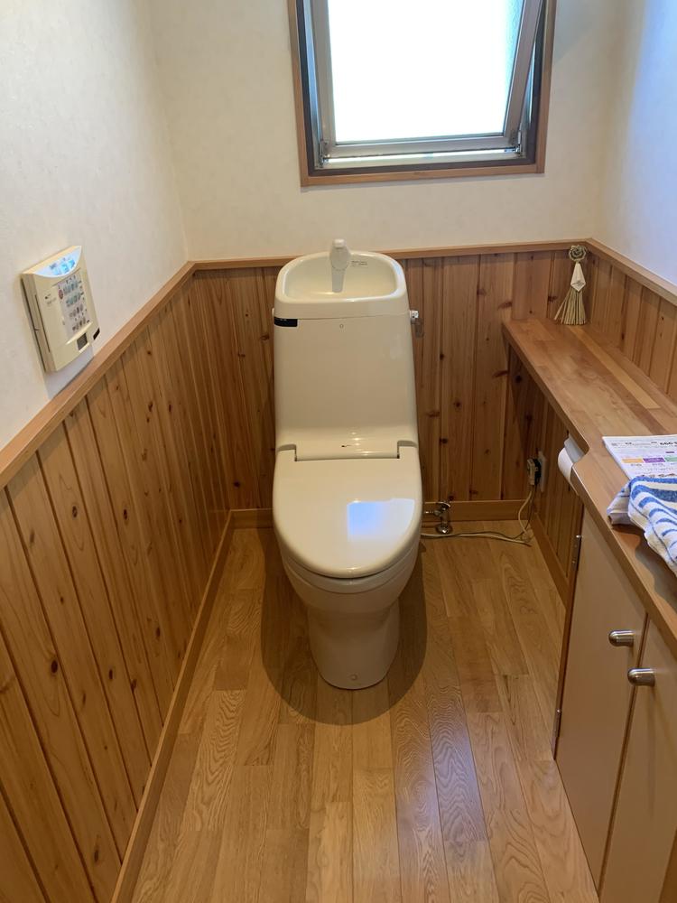 シャワートイレが故障したことをきっかけにトイレの取替をいたしました。 2年ほど前に1階のリフォームをされたばかりでトイレもリフォーム済みでしたが、トイレ設備はもともとあったものを利用されていました。手洗い器を設置されていたこともあり、スッキリしたトイレがいいとの事でタンクレストイレのサティスSを取付けいたしました。