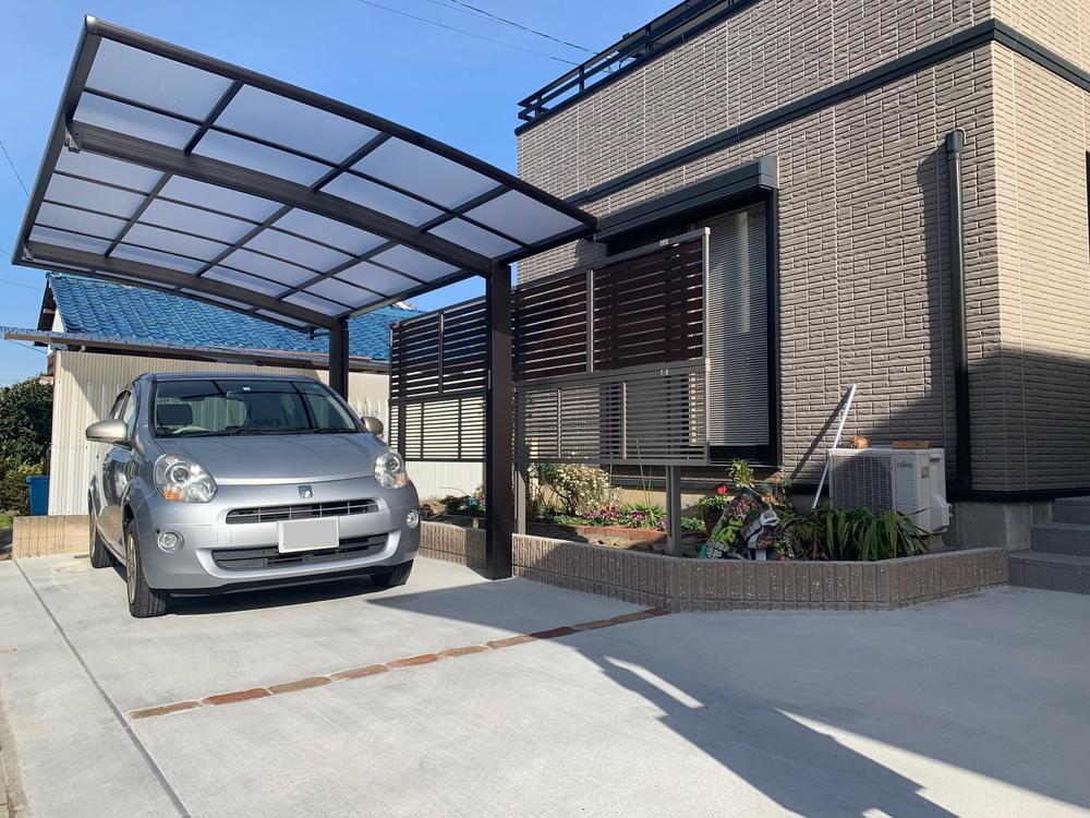 もともとあったカーポート後ろのフェンスも合せて取り替えたことで全体に統一感を持たせています。