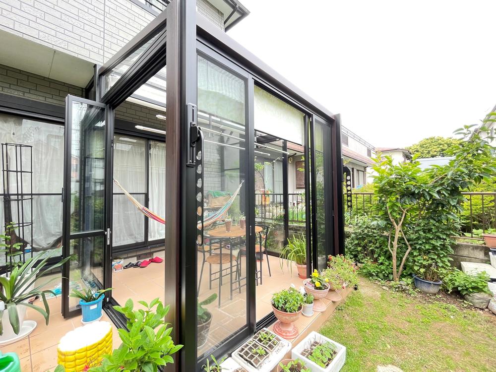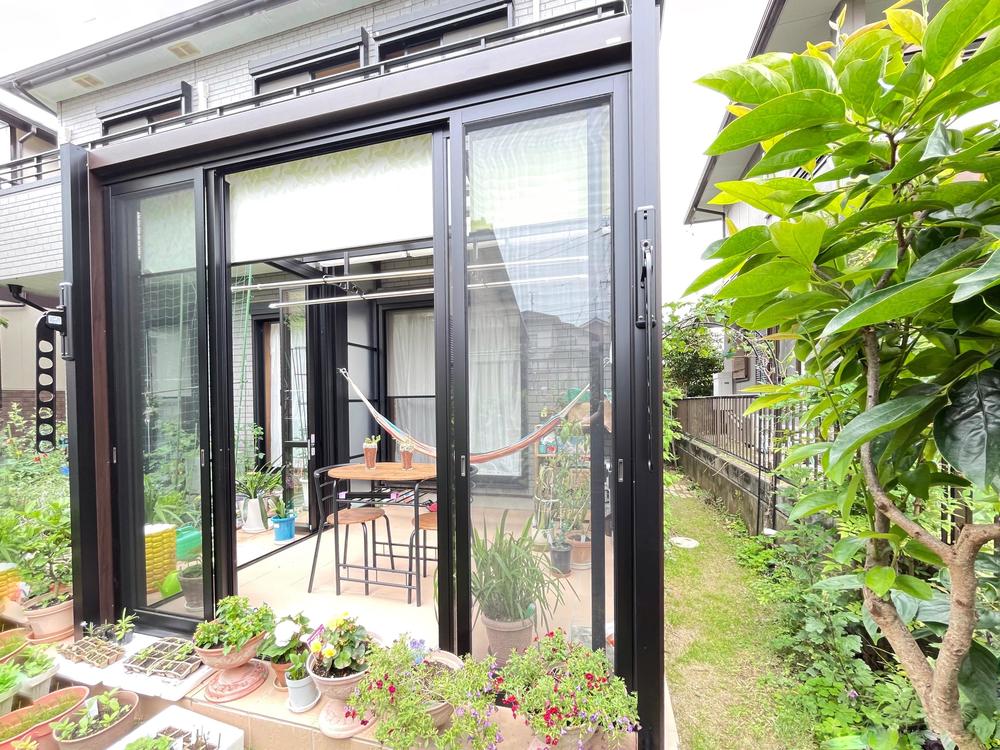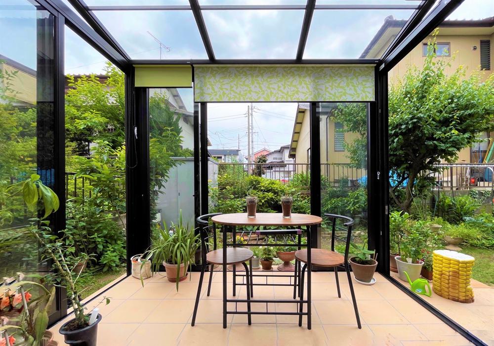 雨や寒い日に鉢やプランターを入れて置けるスペースとしても使える、ガーデンルームを設置いたしました!