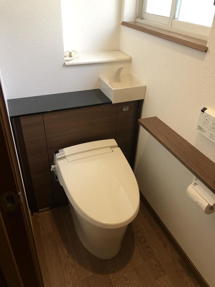 古くなったトイレをリフォームいたしました。 トイレをすっきり見せたいとのご要望からキャビネット付きトイレを設置いたしました。 【LIXIL キャビネットトイレ】 リフォレI型 カラー:クリエモカ 棚手すり:クリエモカ