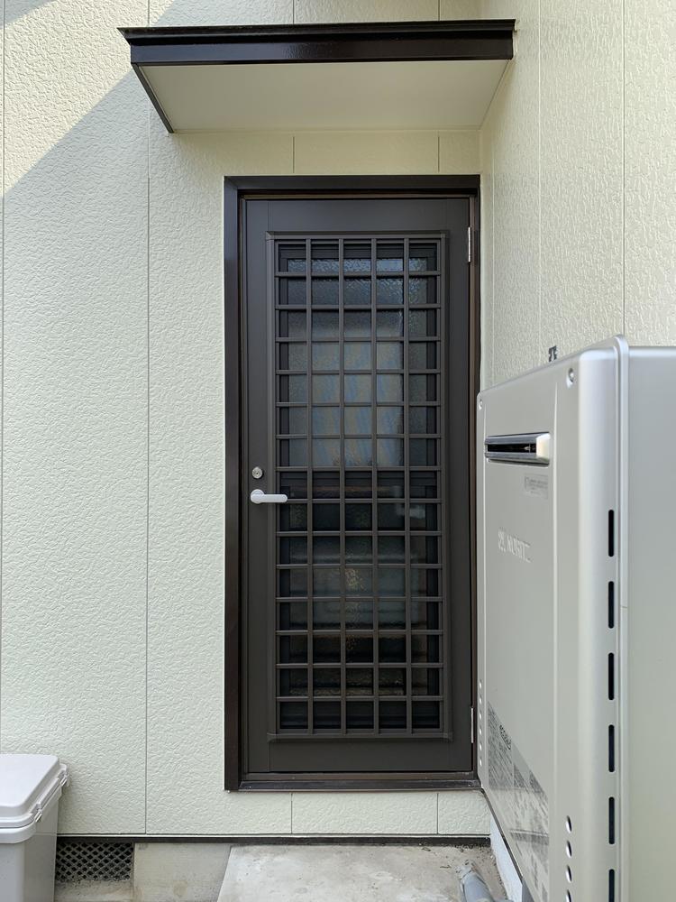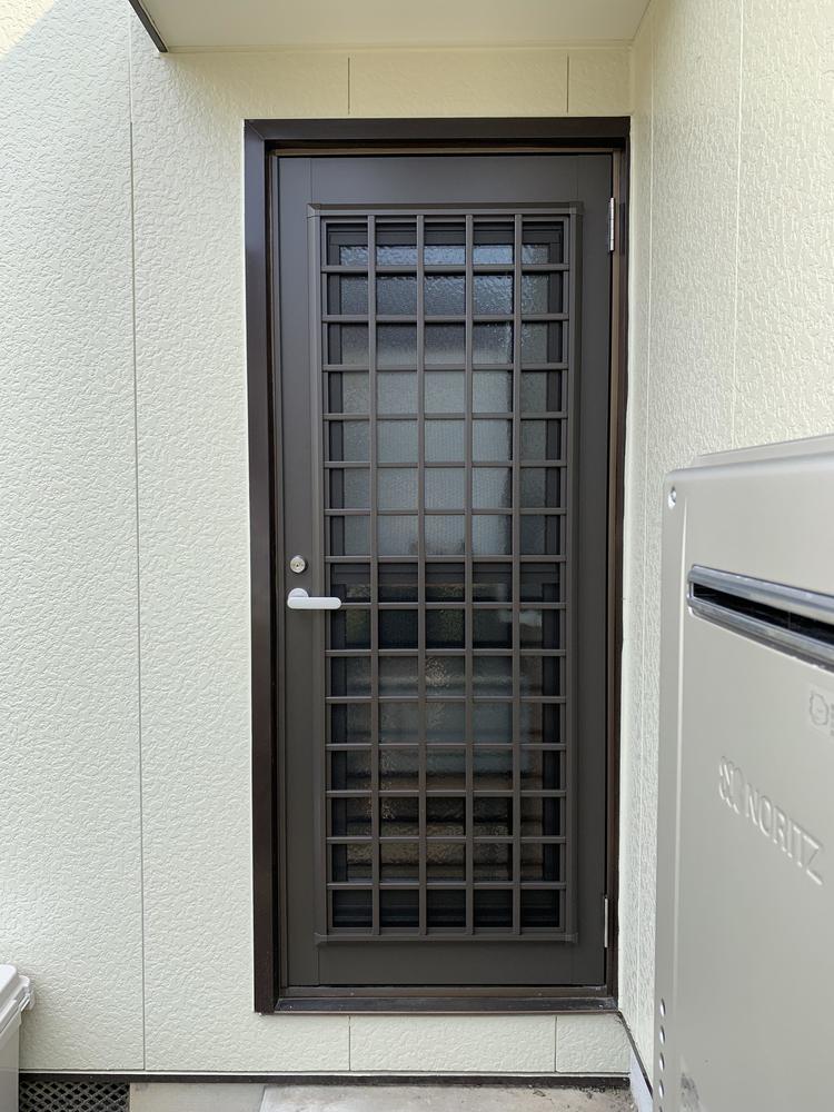 古くなって変色してきてしまった勝手口ドアをお取替えしました。 内側には開閉式の窓が組み込まれています。 扉を閉めたまま換気ができるので防犯性も高くて安心です。