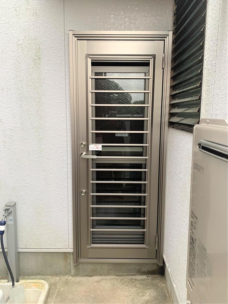 勝手口ドアをリフォームしました。 【LIXIL 勝手口ドアリシェント】 B型/カラー:ブロンズ ペアガラス仕様