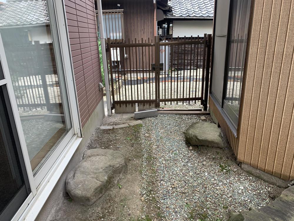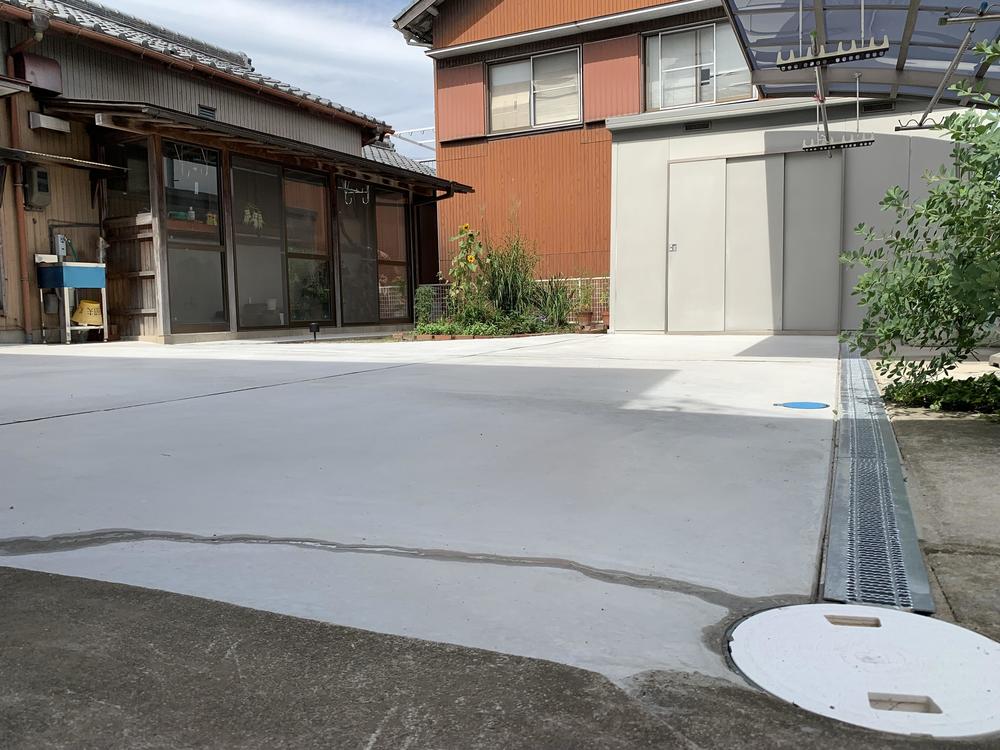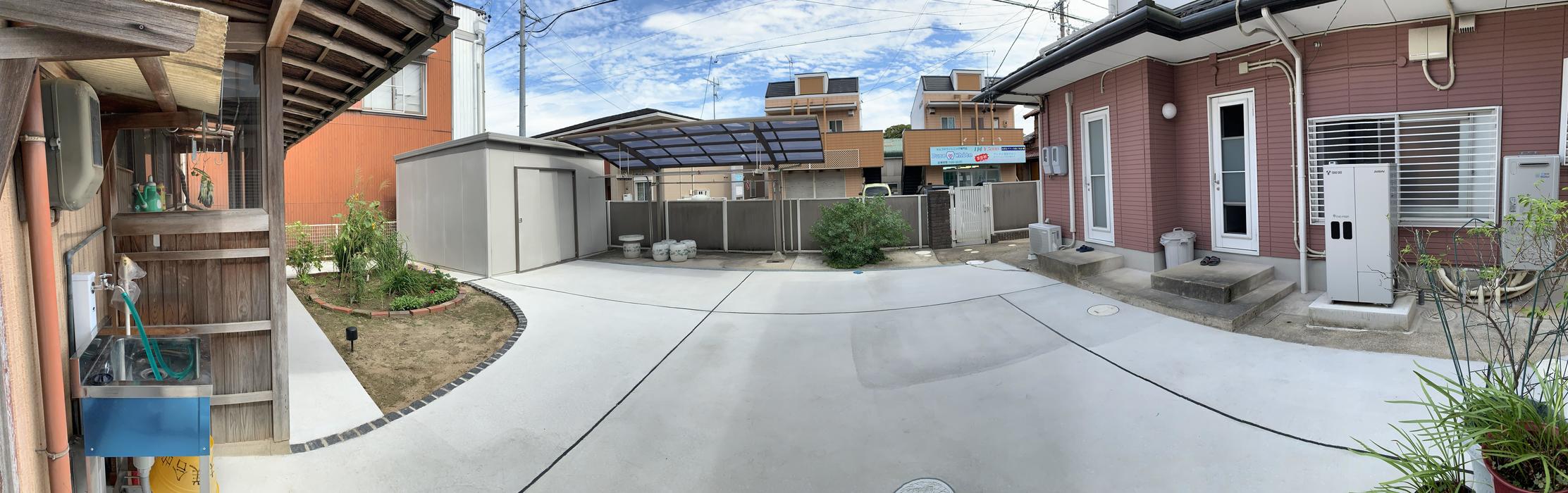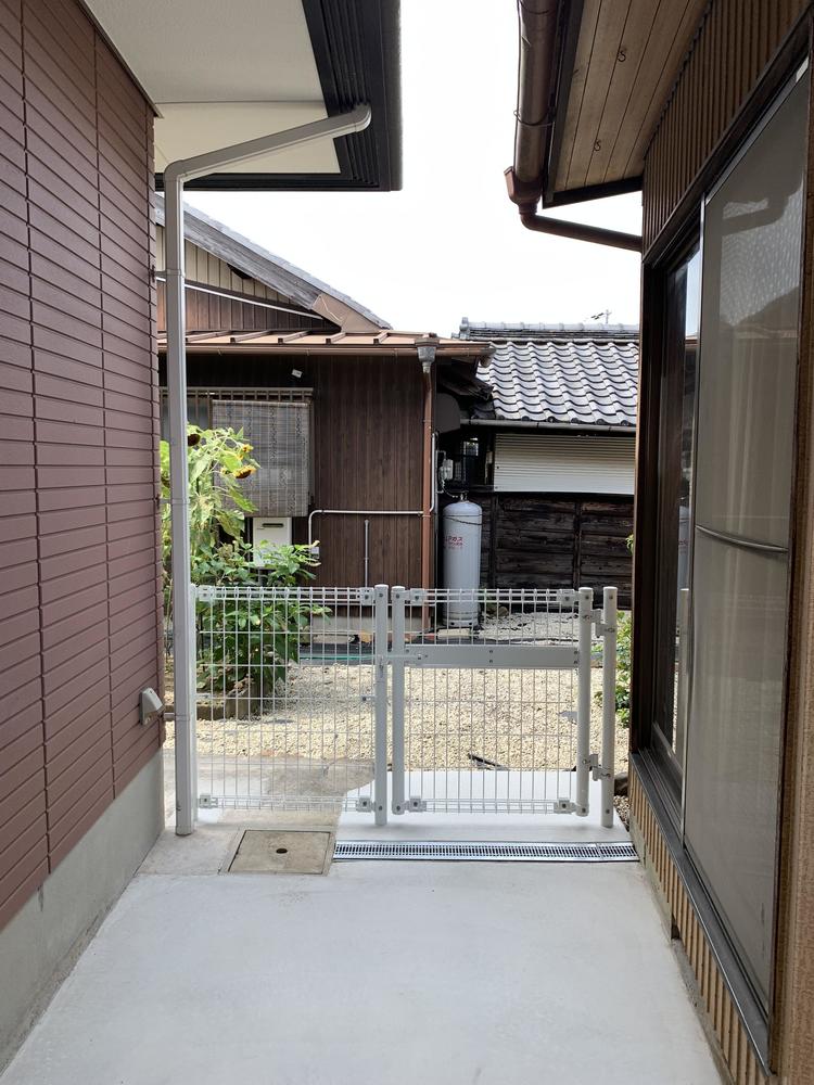 お庭の雑草対策として土間コンクリートの施工をしました。 隣地境界にあった門扉も取替させていただいています。