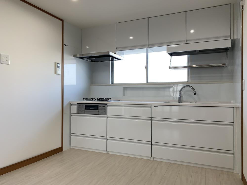 白いキッチンになったことで窓から差し込む光を反射し、日中は照明をつけなくても明るい空間に。
