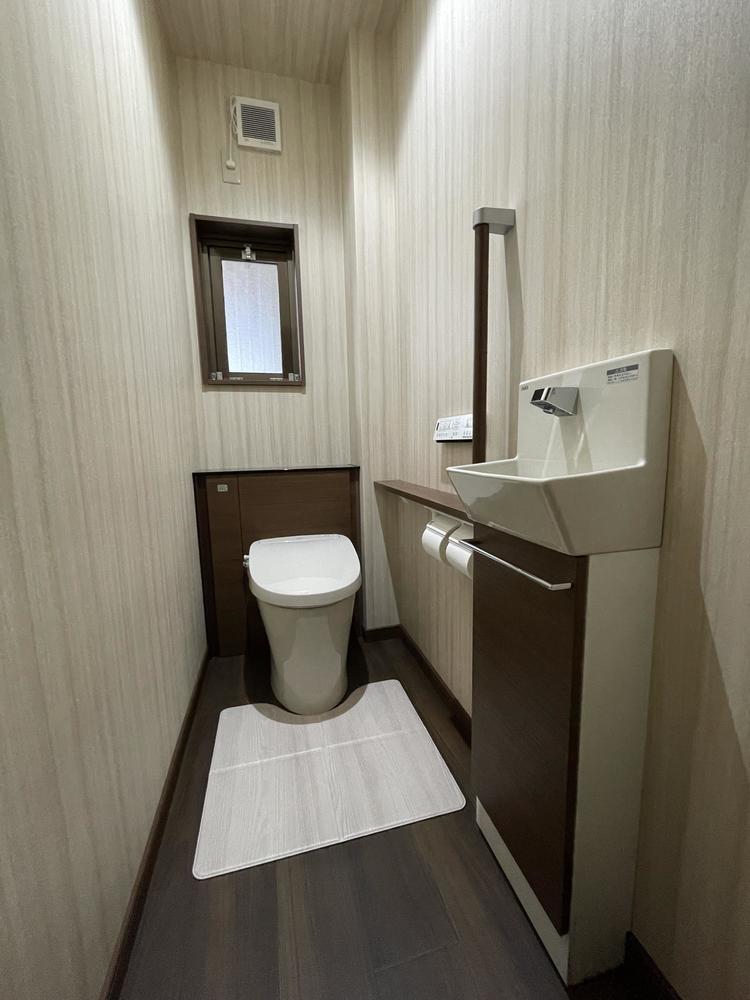 トイレの床が下がって来ていて、トイレのリフォームと一緒に床も直してほしいとご依頼いただきました。