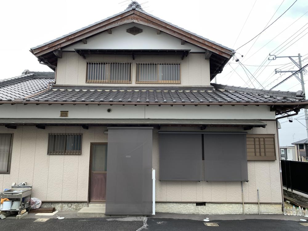 いままではすだれを軒先に吊るしていましたが、「取り付けるのも片付けるのも大変で手軽にできるものにしたい」とのことから、スタイルシェードをお勧めさせていただきました。