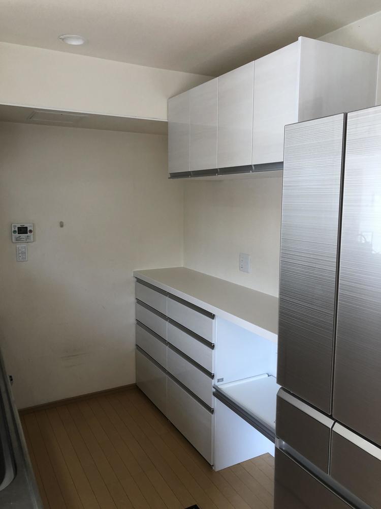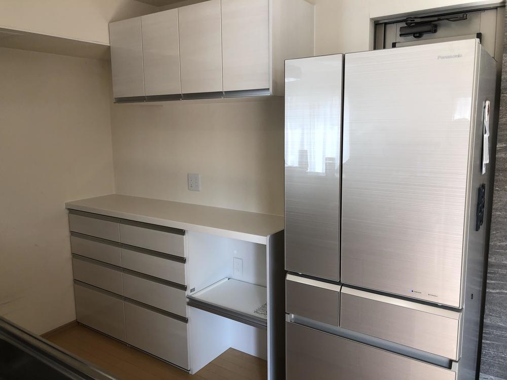 キッチンの収納棚をシステム収納にリフォームしました。 スライド収納で中に入っているものの管理がしやすく、デッドスペースもなくなりいいことずくめです!