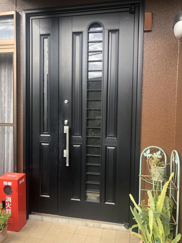 古くなった玄関ドアのリフォームをいたしました。 カバー工法で施工は1日でなので、とても人気の高いリフォームとなっています。 タッチキーを採用される方がとても多く、鍵を出さないでも開閉できるのはとっても魅力的なオプションになっています! 【LIXIL玄関ドアリシェント/M27型】