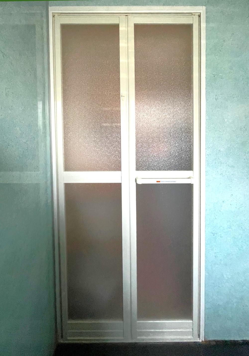 浴室折れ戸が外れてしまうとご相談いただき、修理の可否等確認させていただきましたが部品がないとのことで、今回は浴室折れ戸のリフォームをいたしました。