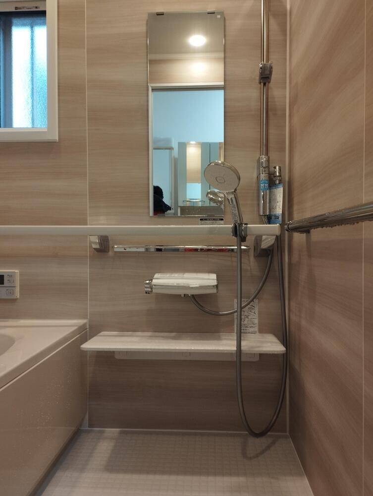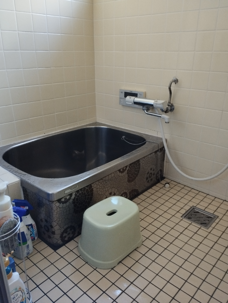 鉄骨造で建てられたお宅で、既設の浴室内に収めるためには1216サイズしか入らなかったのですが、足の伸ばせる浴槽をご希望されていたことと、隣の和室も改装予定だったため、間取りを少し変更させていただき1616サイズのシステムバスをいれさせていただきました!