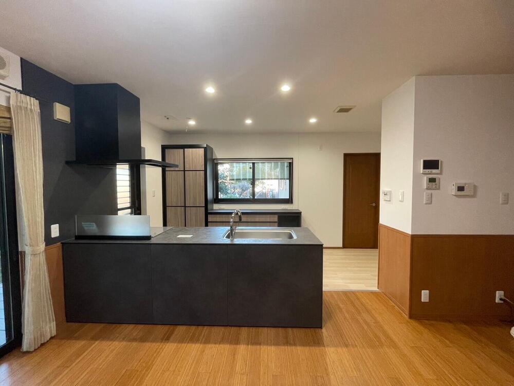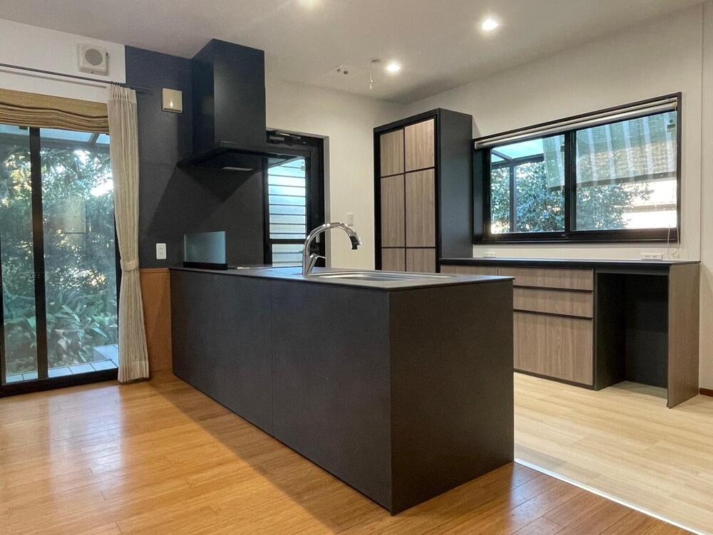壁付けI型キッチンから対面にしたいとのご要望からショールームなどで選定を重ね、高級感のあるブラックのキッチンにリフォームいたしました。