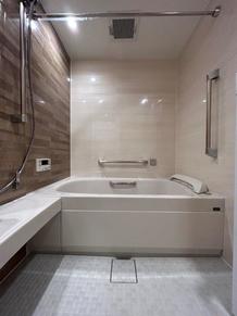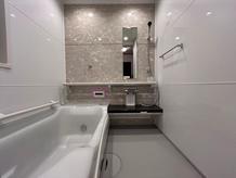 お風呂も洗面も海外ホテルのようなシンプルモノトーンの空間に