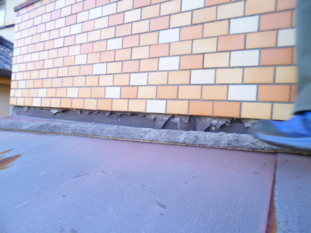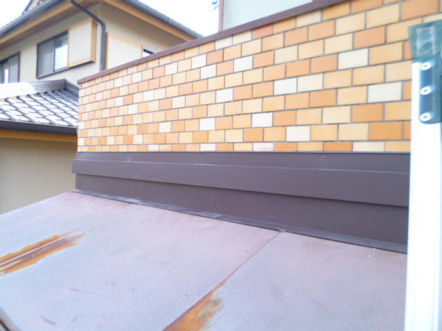 外壁のモルタルがはがれて雨漏りがしていたお宅を板金で補修しました。翌日に大雨の予報が出ていたので、工事が済んで安心しました。(井上)