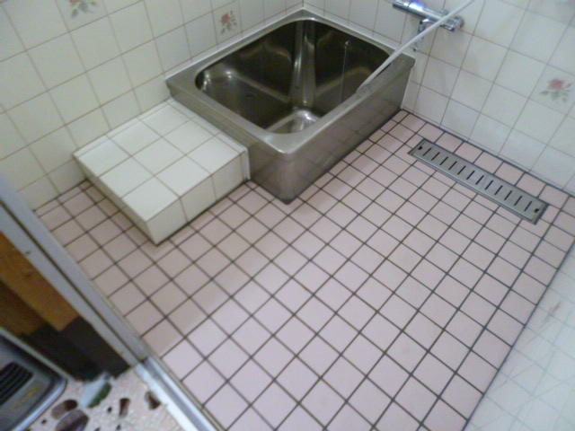 お風呂の床タイルがはがれていたので、張り替えの依頼でした。