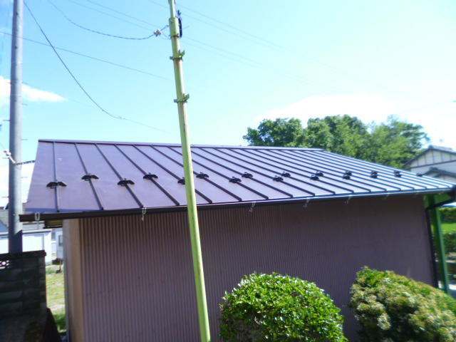 倉庫の雨漏りが気になっていたということで、セメント瓦をガルバリウム鋼板の屋根に葺き替えました。