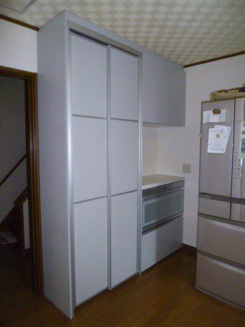 キッチン横に食器棚と家電収納のセットを設置しました。