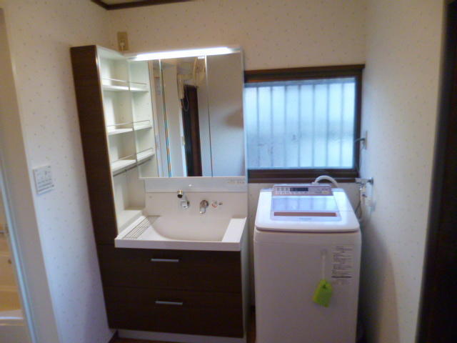 洗面台は設置向きの変更および収納力がアップするサイドキャビネットの取り付けも行いました。