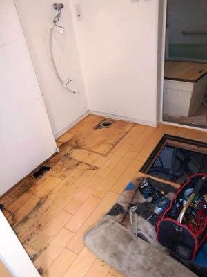 ある日ふと見たら、洗面台の下から水が漏れていたそうです。ご自身で対処されて1年、2年...と月日は流れ、次第にカビの臭いもするようになってきた、とのこと。