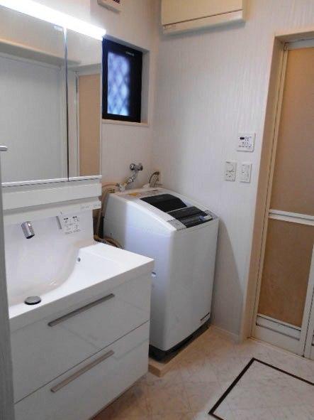 新しく板を張り直しクロスも張り替え、洗面台も新調☆