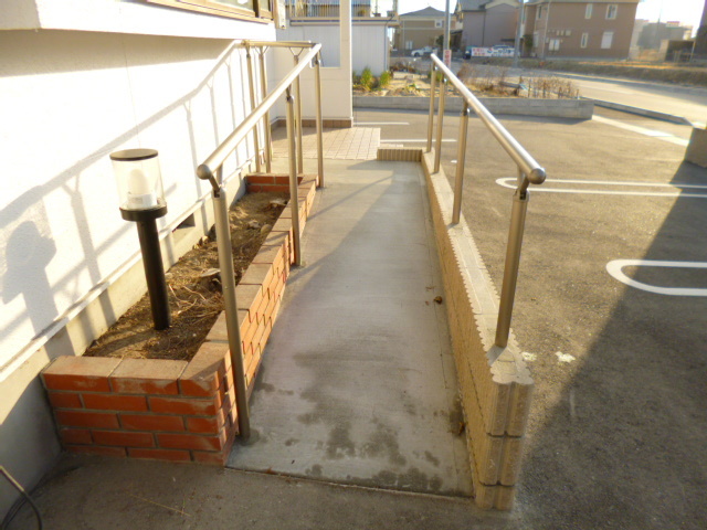 歯医者さんに来られるお客様のために階段にスロープと手すりを施工しました。 ご年輩のお客様が「階段を上がるのが大変なので手すりを付けてほしい」というご依頼でした。 階段は2段しかなく大したことがなさそうに思いましたが、階段の1段の高さが少し高くて何かにつかまらないとご年配の方には上り下りが危険でありました。 そこで手すりとスロープを施工することで、安全で楽に出入りができるようになりました。