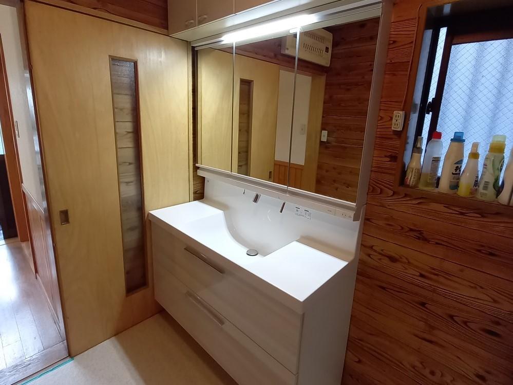 洗面化粧台を新しくし、クッションフロアを張り替えていただいたら、空間がとても明るくなりました。 水垢などが付きにくいというお話でしたので、期待しています。