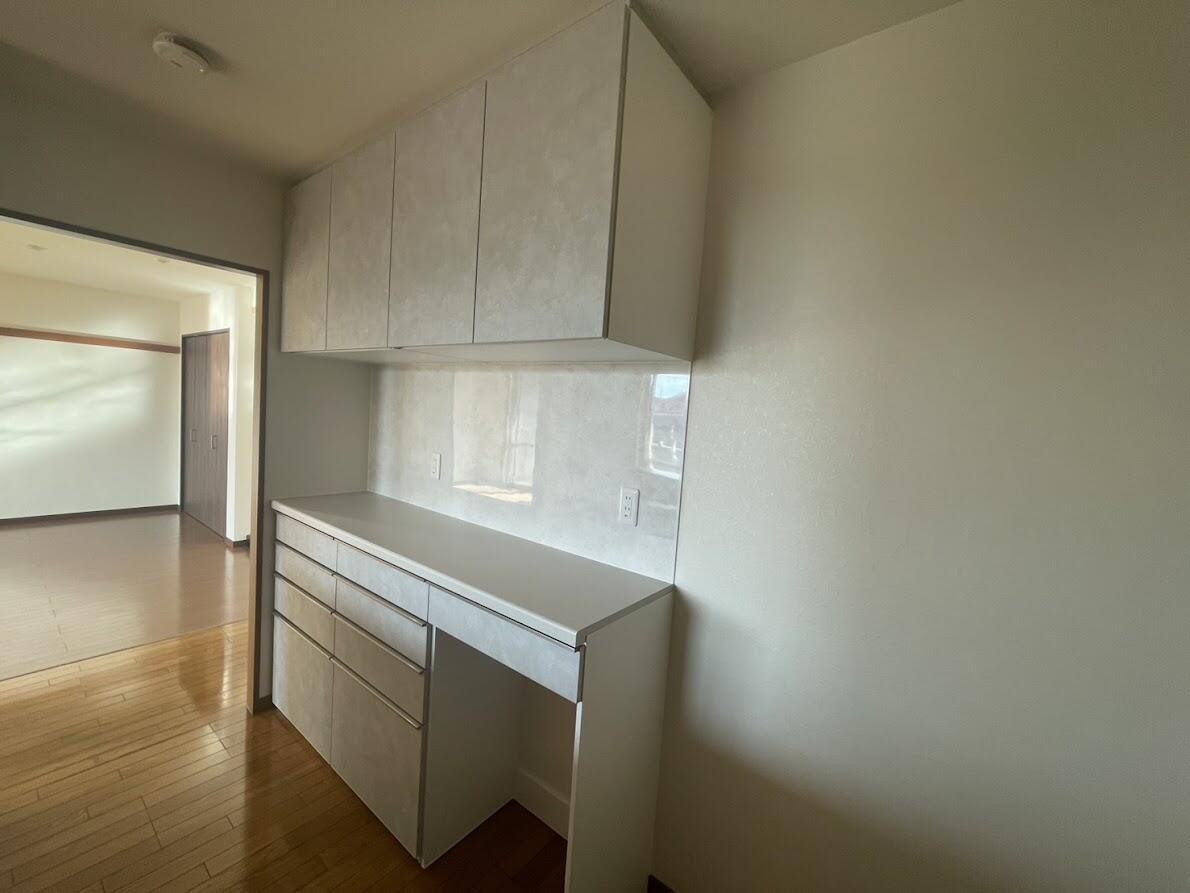 暗さの原因となっていた吊戸棚を思い切って撤去し、背面にカップボードを配置。光の通り道が生まれ、キッチン全体が明るく洗練された印象に変わりました。収納は背面にまとめることで同線もスムーズに。解放感と機能性を兼ね備えた、心地よいキッチン空間が完成しました。