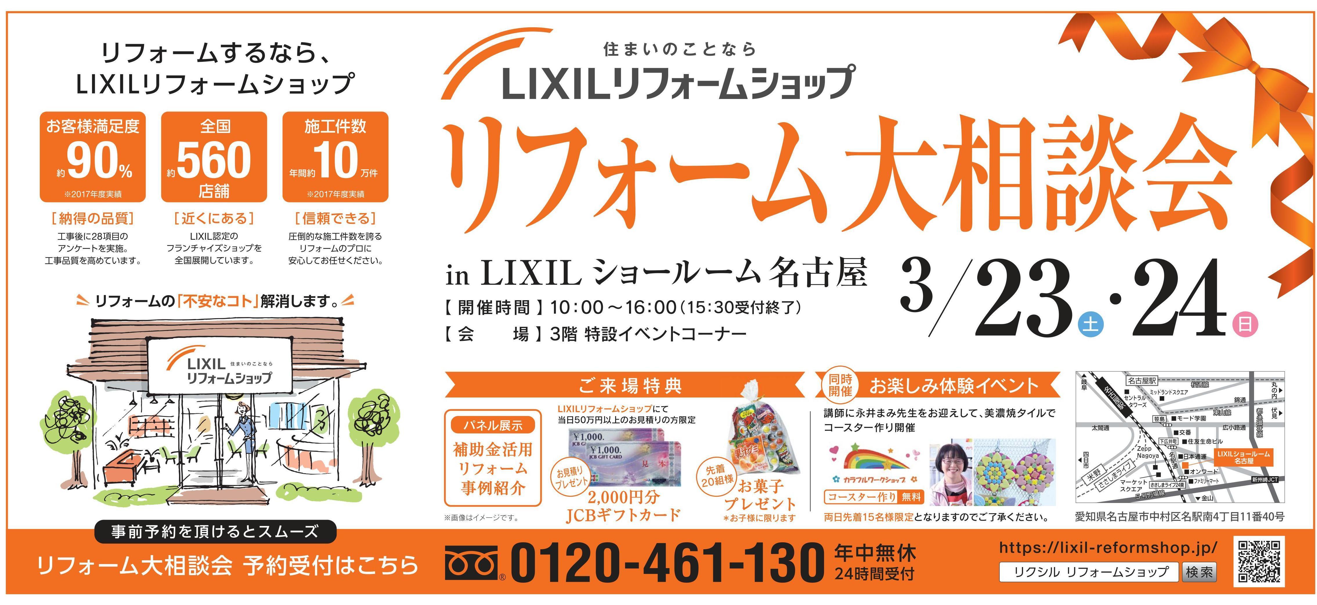 LIXILショールーム名古屋にて、LIXILリフォームショップのリフォーム大相談会を開催いたします。