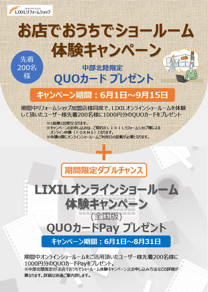 おうちでショールーム体験キャンペーンで、QUOカードをプレゼント!