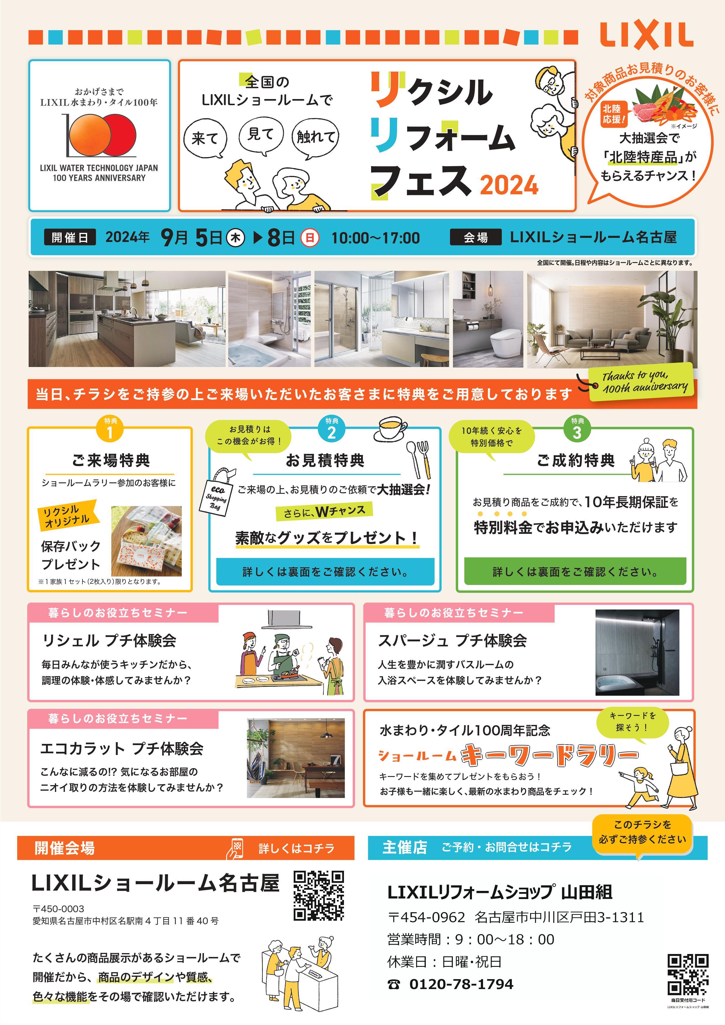 LIXILショールーム名古屋にて、【リクシルリフォームフェス2024】が開催されます。