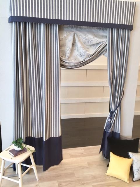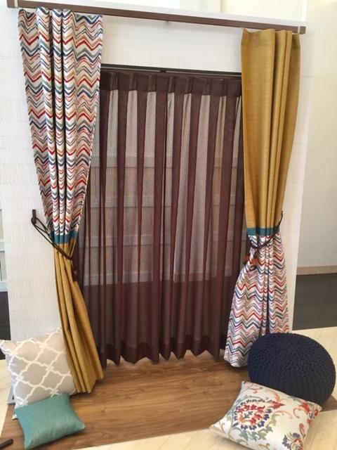 こんな風に、柄と無地のカーテンを切り替えて縫製するのも素敵です。