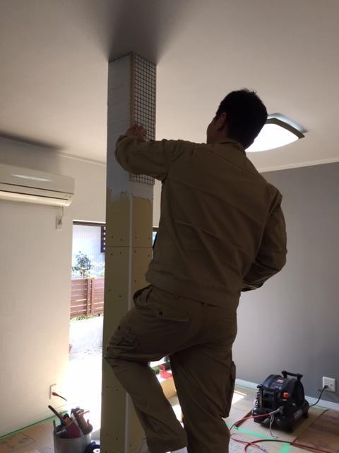 撤去不可な通し柱は、モザイクタイルを貼ることであえて室内のフォーカルポイントにしました。