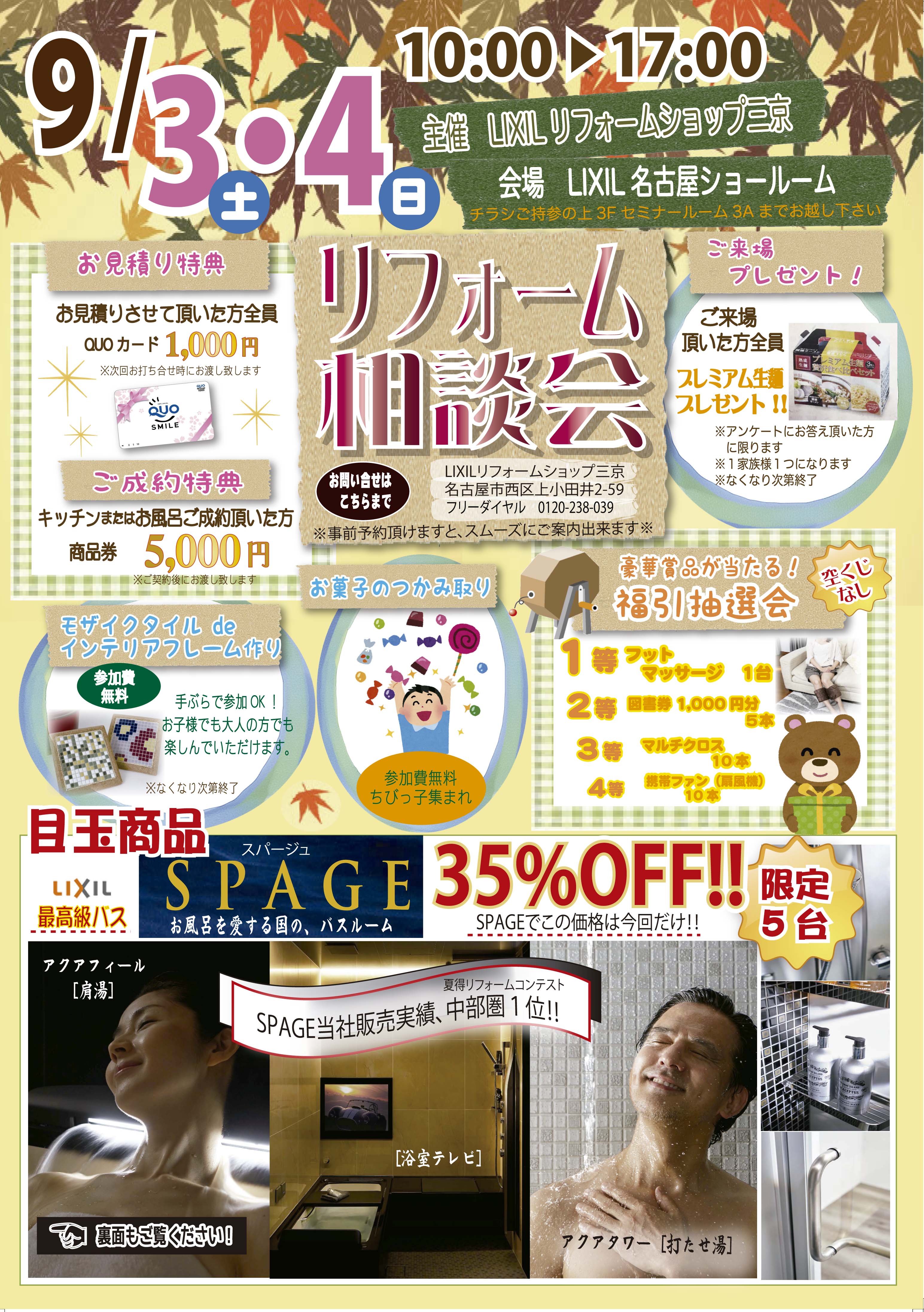 三京では、9月3日(土)・4日(日)に、名古屋笹島のLIXILショールームにて秋のフェアを行います