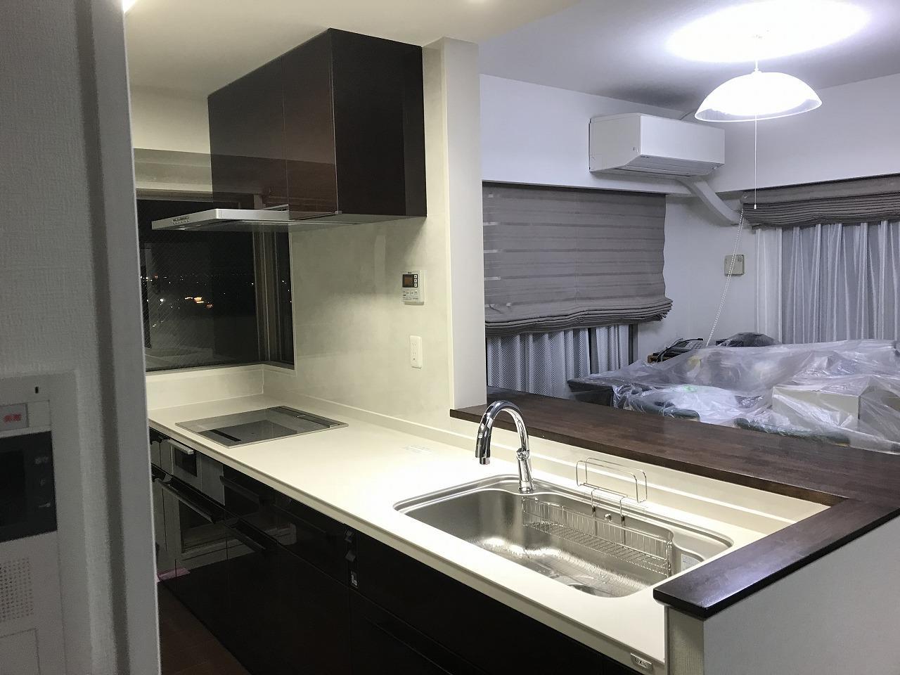 キッチンでの調理スペースが小さく使いずらかったキッチンをリシェルSI L=3000のキッチンを設置、フリー配置プランにて調理場を広く取り快適なキッチンを実現