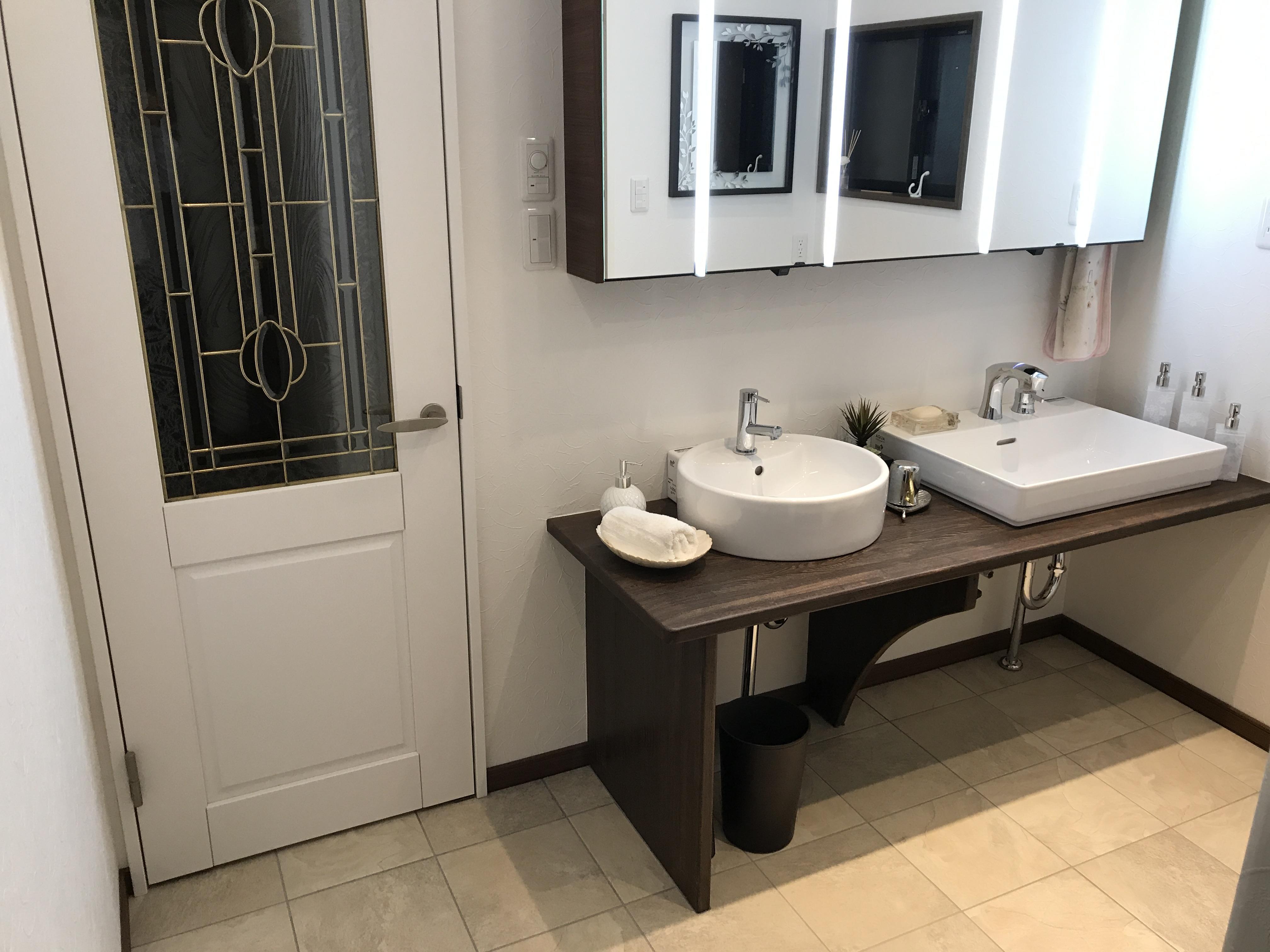 何でも自分でDIYしてしまうご主人様と一緒に頭をひねり、上質な空間を作りました。 大変ご満足いただけました。 【浴室/スパージュ】 【洗面ミラー/ルミシス】