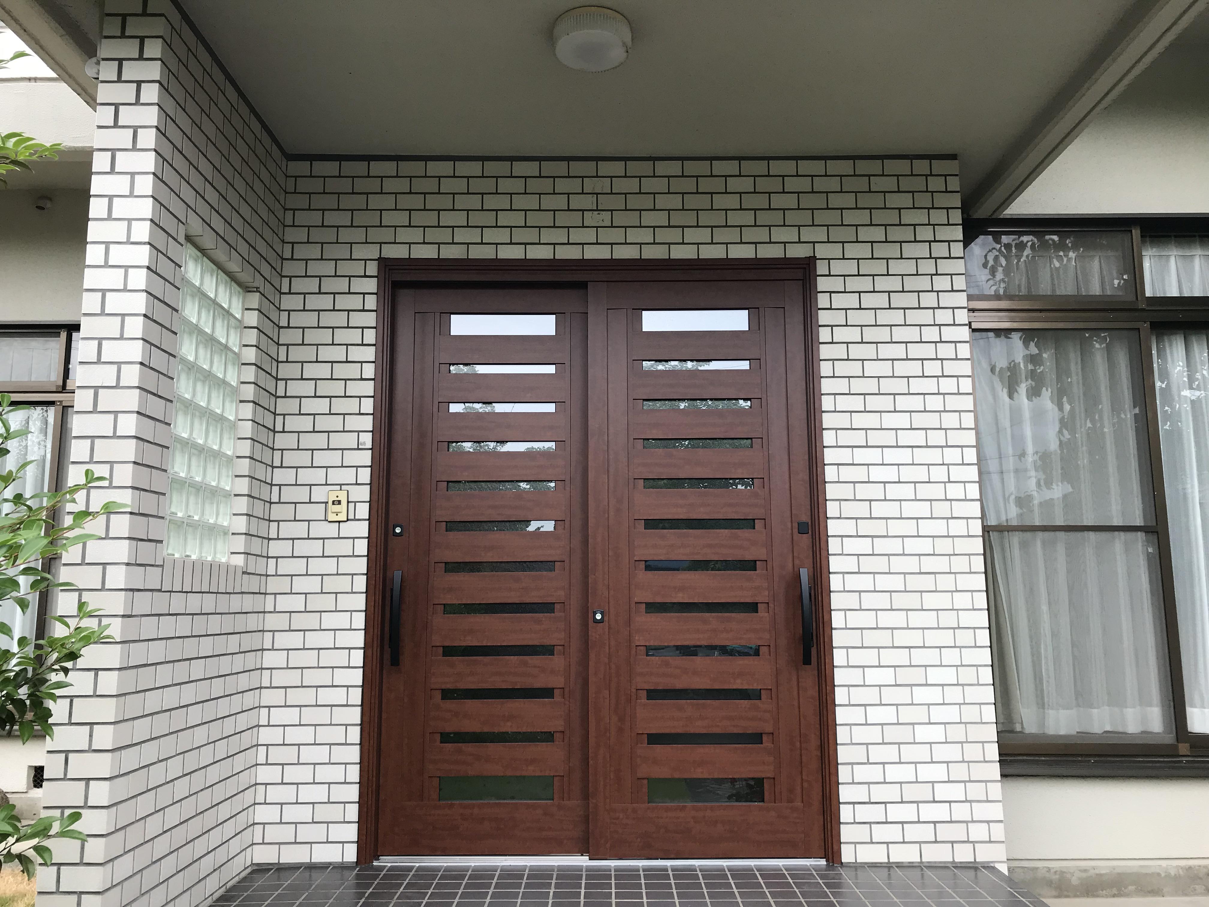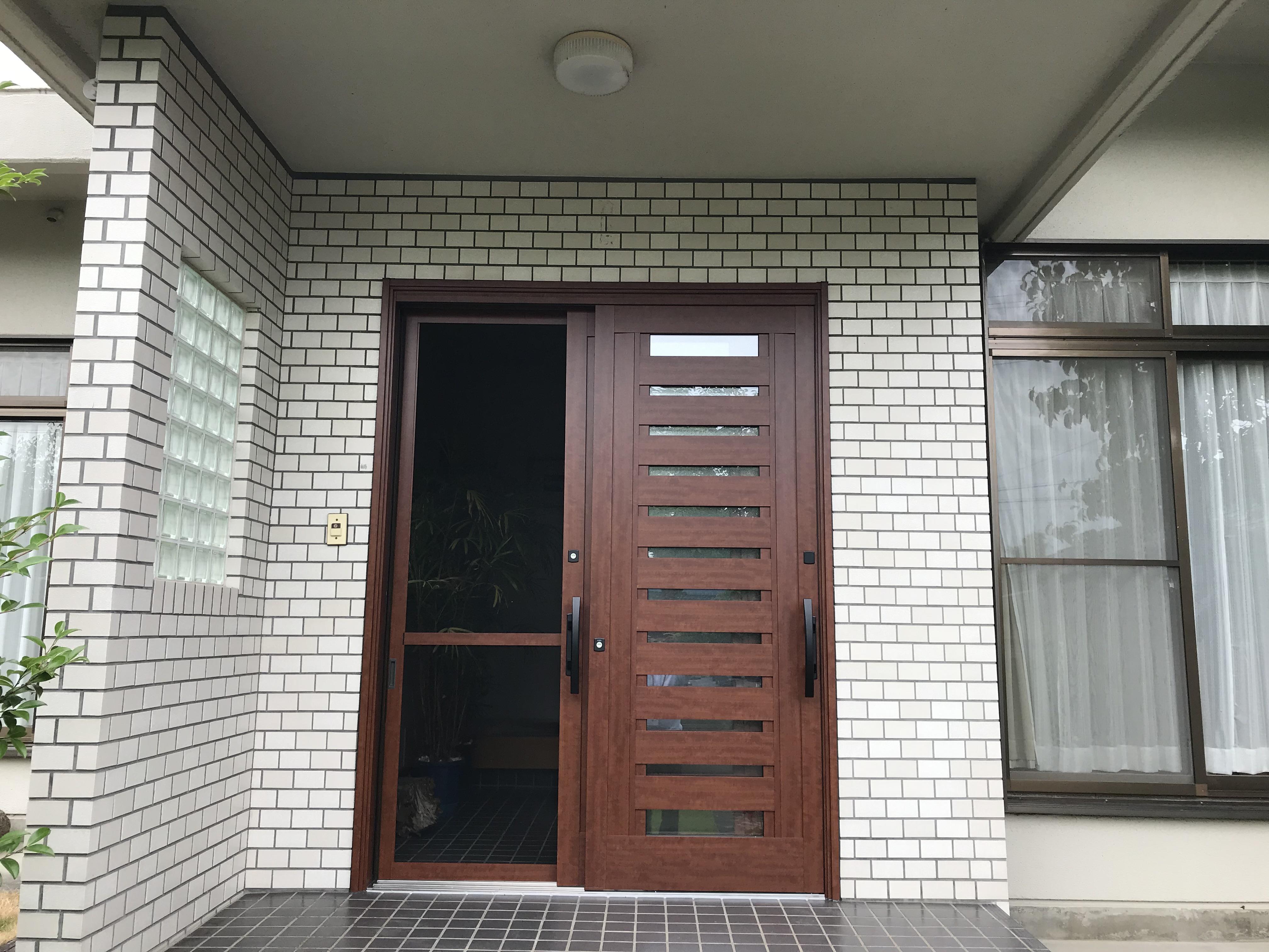 重たい木製ドアから、開け閉めしやすい引き戸に1dayリフォーム。 網戸もついているので風通しもよくなりました。 ドア本体の断熱性能も高まり、お客様も大満足いただきました。 【玄関ドア リシェント3/LIXIL】