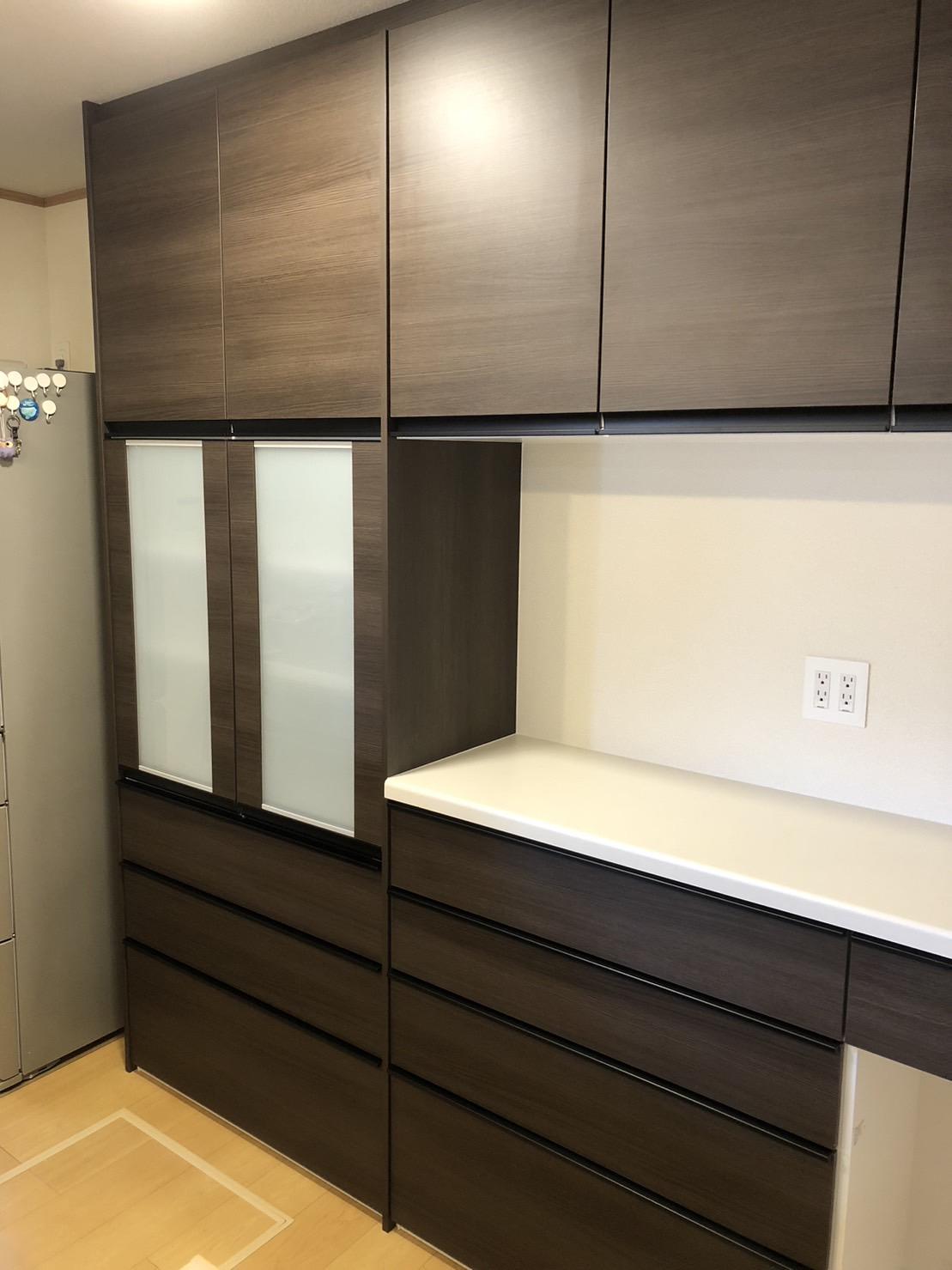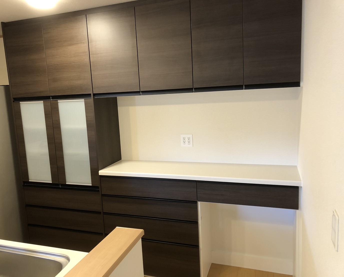 統一感のある素敵なキッチン空間になり、奥様には大変喜んでいただけました。