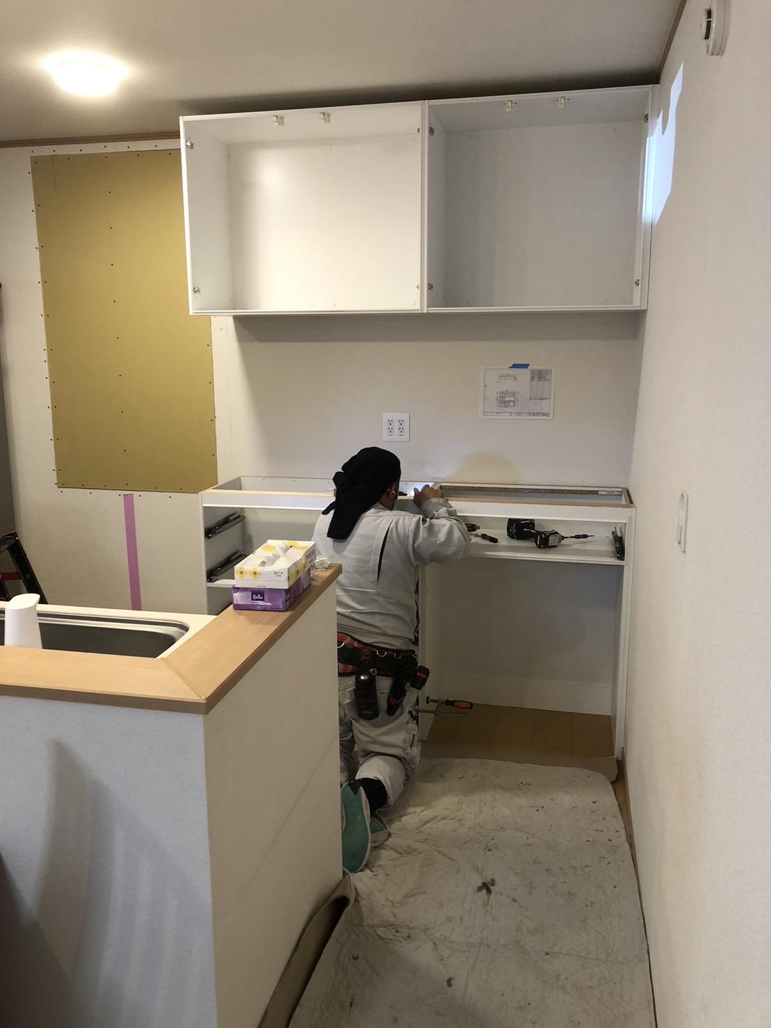 壁に下地補強工事をして、吊戸棚を取り付けました。