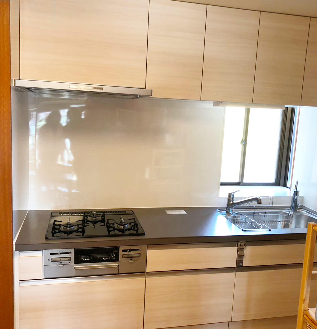 収納力を兼ね備えたモダンな雰囲気のキッチンに。 サイズもピッタリと収まりました。