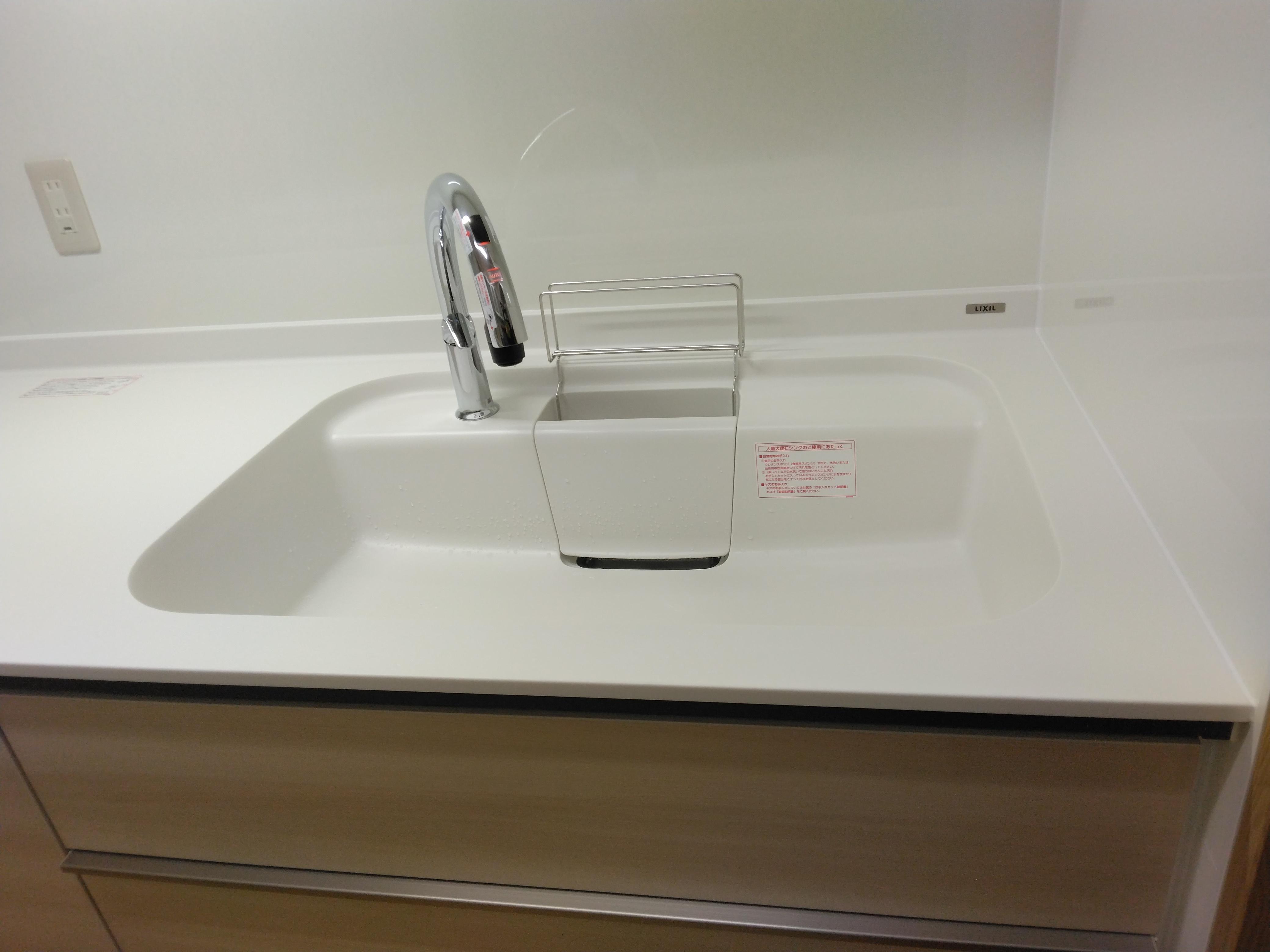 キッチン水栓は、自動水栓ナビッシュをお選びいただきました。動きを感知して吐水・止水するから、調理や洗い物の手を止めません。両手がふさがっていても、手が汚れていても、ストレスなくお使いいただける優れものです。