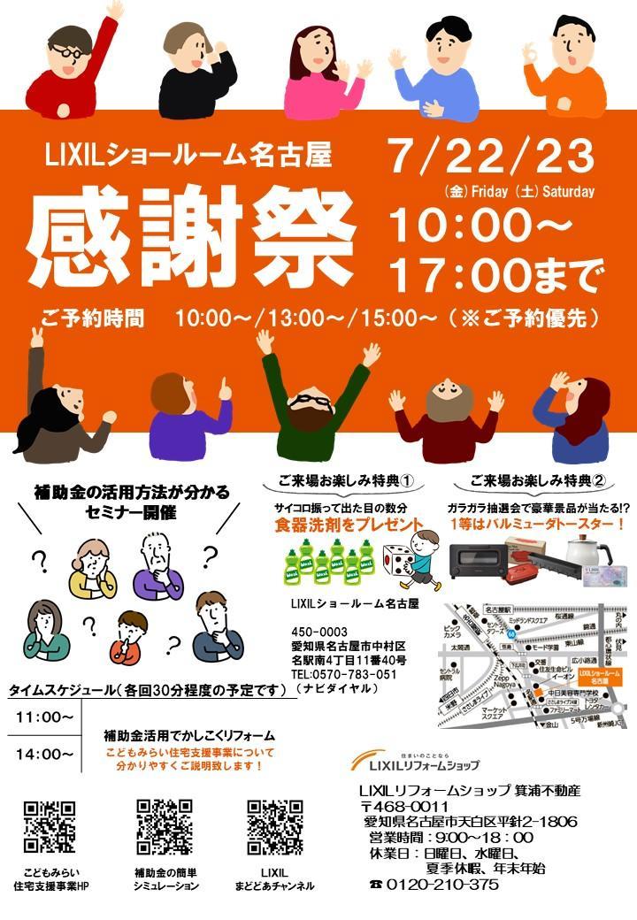 7月22日(金)・23日(土)お客様感謝祭 in LIXILショールーム名古屋