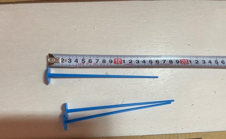 壁8cm、天井16cmのピンを差して厚みを確認します。