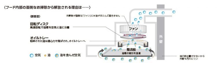 ほかの部分は掃除が必要ですが、一番掃除がしづらいレンジフードのお手入れが簡単にできます。手洗いに比べて時間が短縮され、節水にもなります。