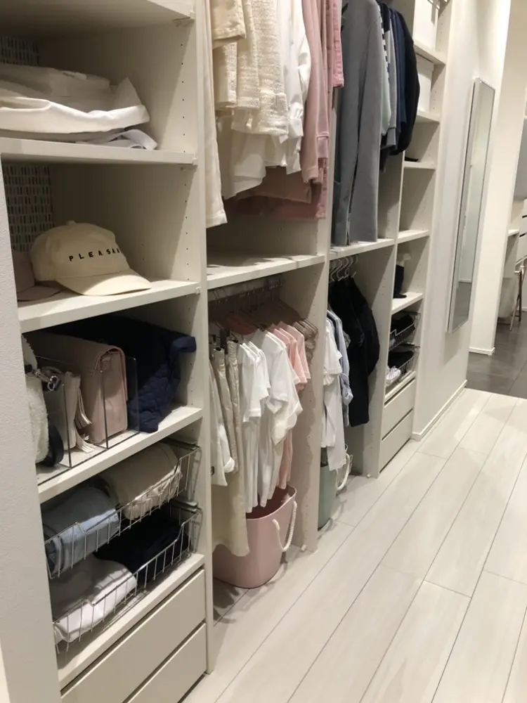 洗濯頻度の少ないニットも通気性のある網カゴで保管できるのはうれしいですね。