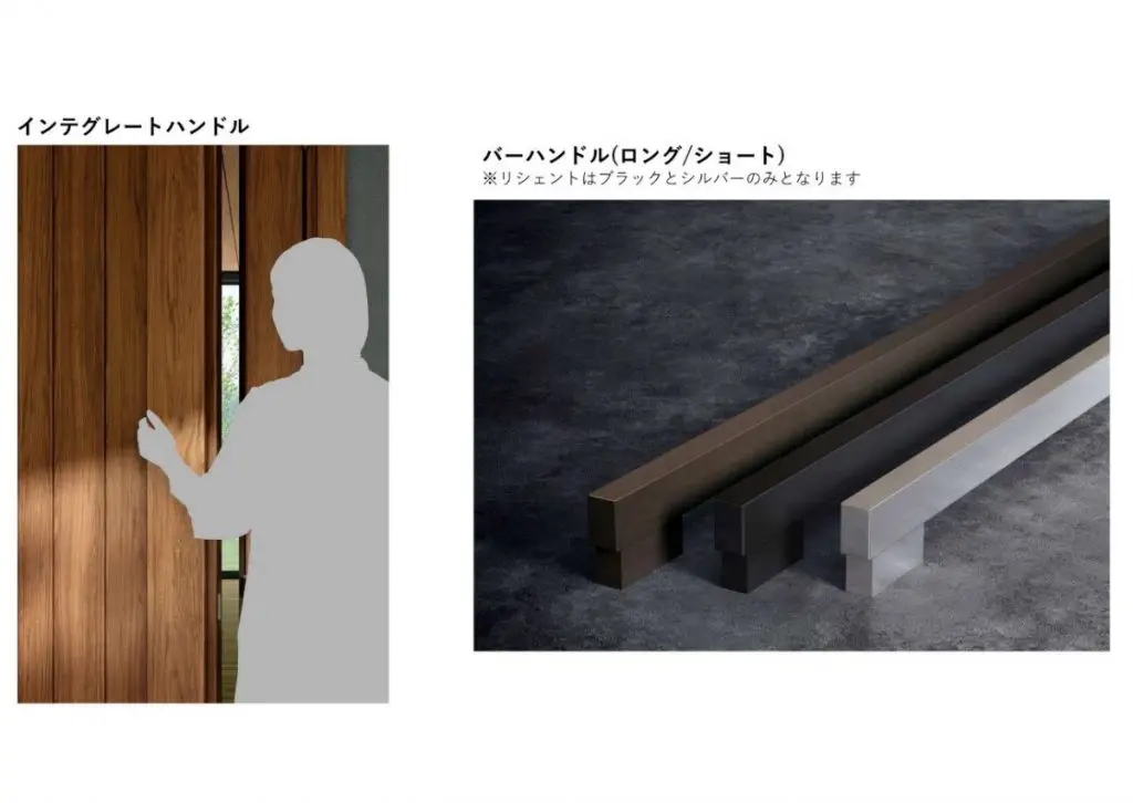・ハンドル:10A型の板張りで「インテグレートハンドル」、シンプルなデザインで素材美を引き立たせる「バーハンドル」