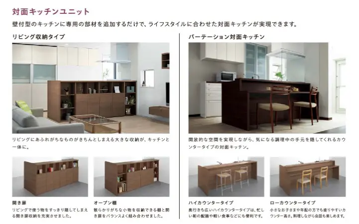 LIXILには対面カウンター下が収納になった商品もございます。お気軽にお問合せ下さい。