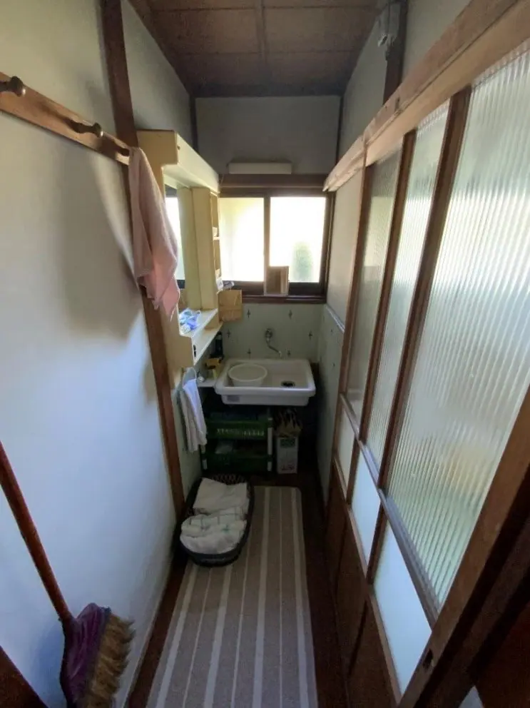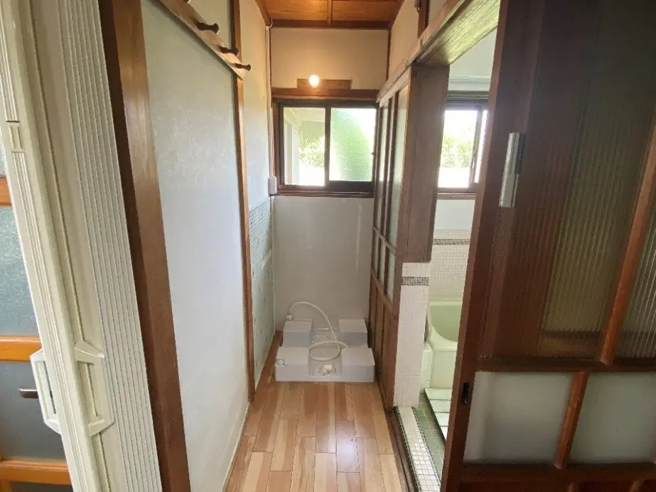 また、もともとの洗面台の位置には正面に窓があり、鏡を横づけにするしかありませんでした。こちらの洗面台を撤去し、洗濯機置き場を設けました。