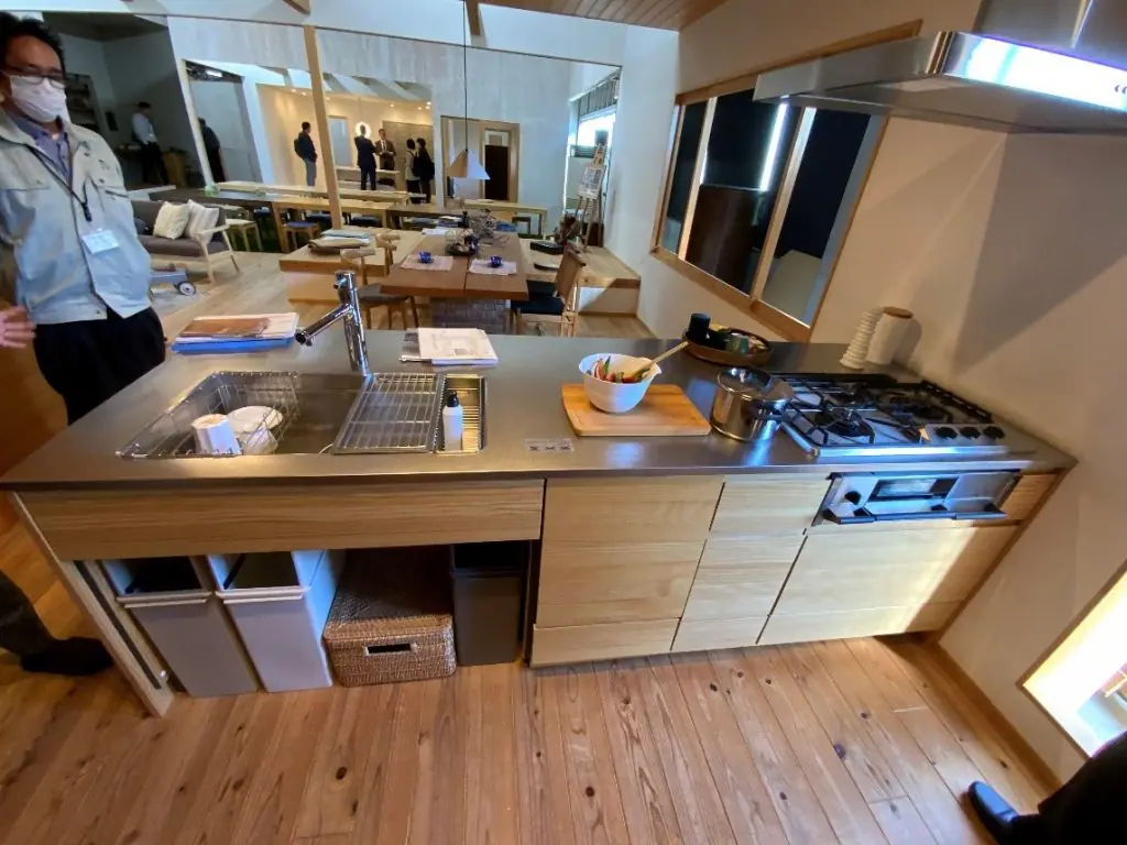 ウッドワンさんは無垢の木材を使ったキッチンや洗面などのメーカーという程度の認識でしたが、会場に着くなりたくさんの華やかなブースを見て圧倒されました。