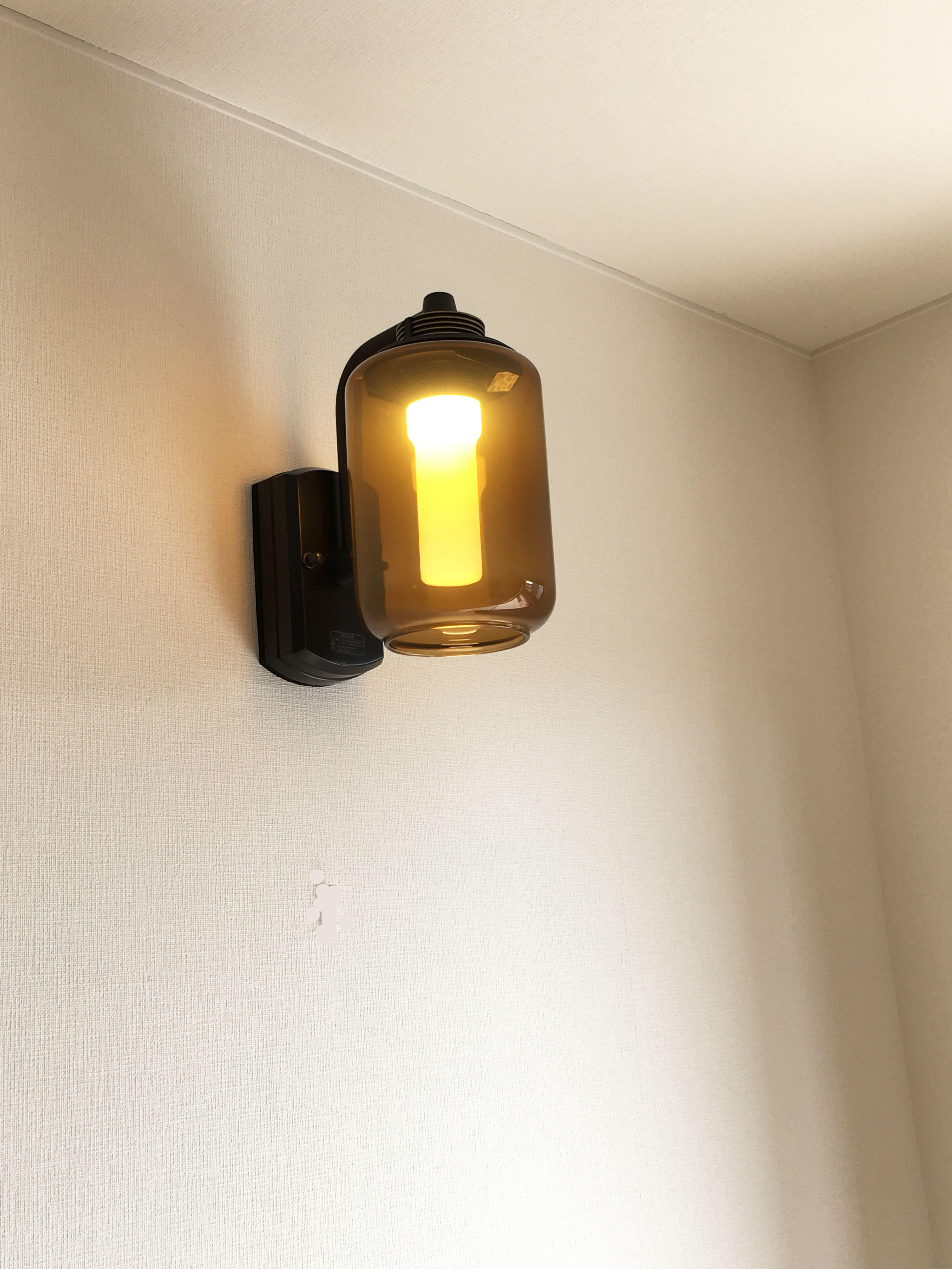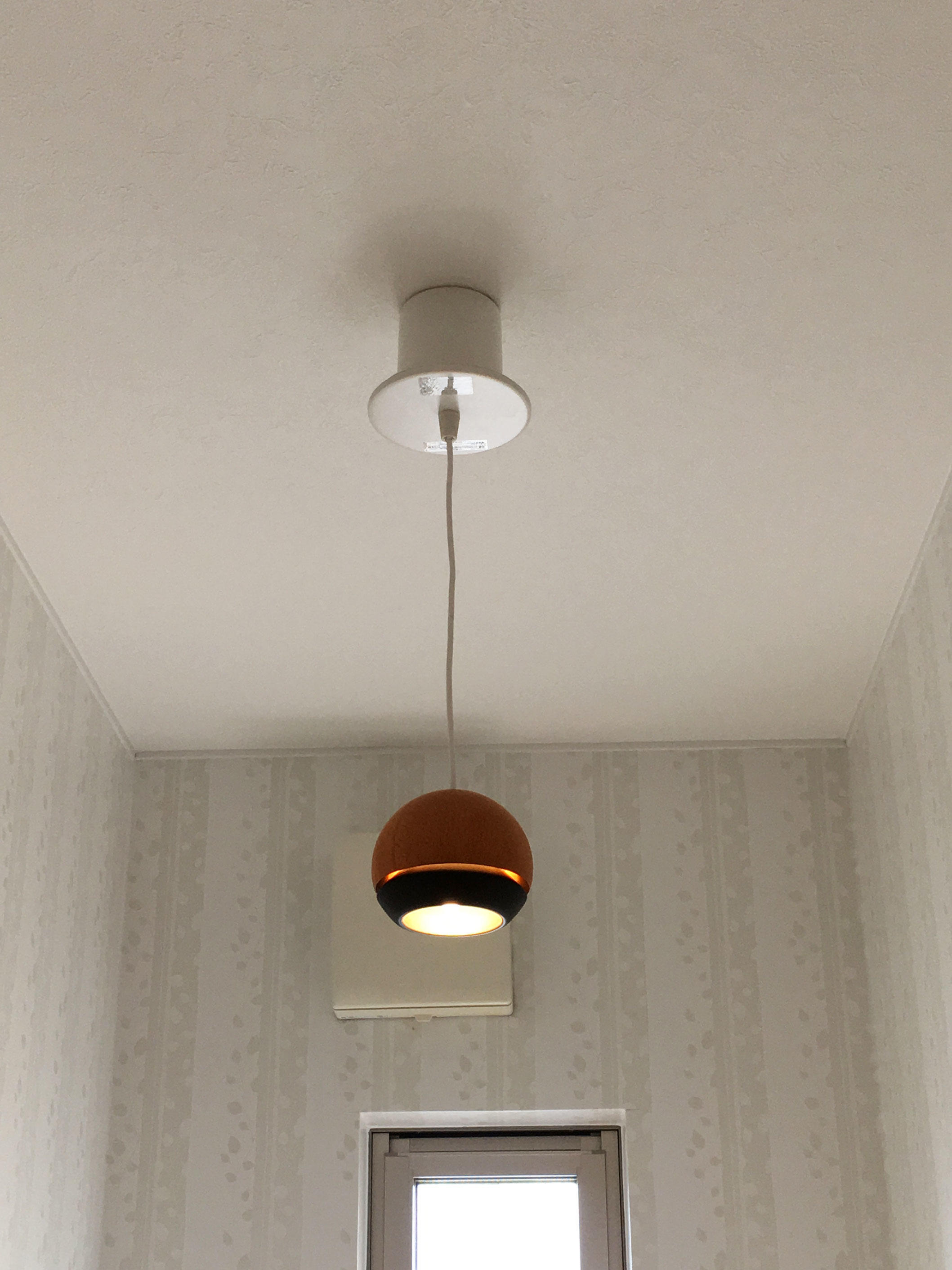 玄関とトイレの照明の取替えを行いました。玄関の照明は電球色で笠のガラス色と重なって淡く優しい雰囲気です。トイレにはペンダントライトを設置させて頂きました。木のデザインはあたたかみがあり、とてもかわいらしいです!ペンダントライトのコードの長さはお客様で調節可能ですので、お気に入りの高さをぜひ探してくださいね!