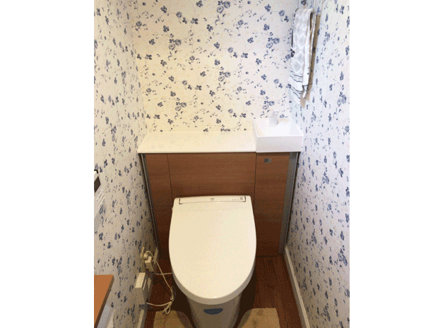 LIXILのキャビネット付トイレ『リフォレ』を施工しました。キャビネットにお掃除道具や小物類を収納することができ、シャープなトイレ空間に。トイレ内にタンクも隠されているので、タンクレスと変わらないスッキリさです。リフォレの場合、大がかりな内装工事を行わなくても、トイレの雰囲気が一変するのを楽しむことができます。